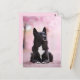 Carte Postale Bouhund norvégien noir et fleurs de cerisiers
