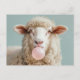 Carte Postale Boule blanche de mouton laineux soufflant rose bul