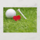 Boule de golf en forme de coeur d'amour et tee Carte postale