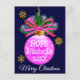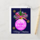 Carte Postale Boule de Noël unique ruban rose