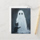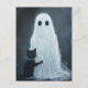 Une scène d'Halloween amusante avec un fantôme couvert de fil et un chat qui l'embrasse