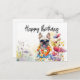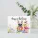 Cette carte d'anniversaire représente un Bouledogue français dans un champ de fleurs. Le chien est entouré de fleurs colorées, avec un message d'anniversaire écrit en écriture cursive.