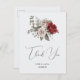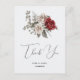 Carte Postale Bouquet de fleurs boho rouge gris et crème Merci