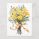 Cette belle carte de vœux présente un magnifique bouquet de fleurs de freesia jaune orné d'un ruban doré scintillant. C'est une expression vibrante et élégante de vœux sincères.