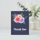 Une carte de remerciement de fête avec un joli bouquet de roses à l'aquarelle avec des brindilles, des feuilles et des branches ensemble dans un arrangement floral coloré. Fond bleu marine. Message personnalisé au verso.