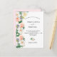 Un faire-part de mariage floral coloré et tendance, rose vif, or rose et blanc. Un arrière - plan blanc classique à l'avant. Décoré de grandes fleurs verdoyantes aux couleurs de l'eau, de fleurs blanches, d'or rose, de rose vif et de verdure. Personnalisez et ajoutez vos noms et les détails du mariage. Texte noir. Dos : arrière - plan rose vif, design de carte postale. Conseil : Si vous ne voulez pas qu'il ressemble à une carte postale, cliquez sur customiser, allez à l'arrière et retirez le séparateur et le timbre postal.