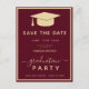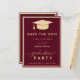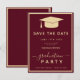 Burgundy Gold Classic Graduation Enregistrer la date Invitation script de l'université ouvrir la maison photo graduation. Ajoutez vos photos préférées avec une élégante calligraphie script et un collage de grille photo.