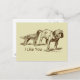 English Setter renifle le cul d'un Bulldog avec le slogan "I Like You" (Je t'aime). Illustration drôle de chien.