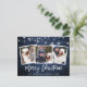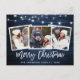 Brosse en bois bleu rustique Script 3 Photo Famille Joyeux Noël Carte avec lumières à cordes