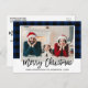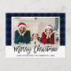 Brush Script Blue Plaid Family Photo Christmas Postcard