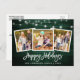 Brosse rustique en bois vert Script 3 Photo Family Happy Holidays Carte postale avec lumières à cordes