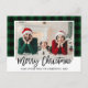 Brochure moderne Script Green Plaid Family Photo Christmas Carte postale