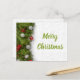 Cette carte postale présente des branches de pin vert avec des billes rouges et argentées et du texte "Joyeux Noël" en police verte assortie sur le côté avant. Le motif de flocon gris clair est dans l'arrière - plan des deux côtés.