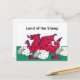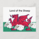 Le dragon rouge gallois est rejoint par trois moutons de caricature avec les mots "Pays du mouton"