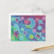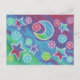 Un ciel nocturne aux couleurs vives avec étoiles brillantes et lune rayée. Carte postale avec un design personnalisable violet, rose, bleu et vert pour vous permettre de personnaliser avec votre propre texte, images et idées. Un dessin original au crayon coloré par Jess Perry.