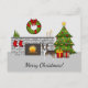 L'illustration originale de Destei d'un chien de race Boston Terrier de couleur blanche et bracelet mignon. Le chien est placé dans une salle festive avec une cheminée et beaucoup de décorations de Noël dont un arbre de Noël vert, des bas rouges et une couronne avec un arc rouge. Il y a aussi une zone de texte personnalisable qui se lit maintenant : "Joyeux Noël !".