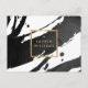 Les touches de peinture noire et épaisse créent une toile de fond abstraite sur ce modèle de carte postale design. Votre nom ou nom d'entreprise est affiché dans une fausse boîte dorée sur le devant pour une esthétique moderne. Une carte postale amusante et attrayante, parfaite pour envoyer des remerciements aux clients, pour des salutations personnelles ou pour des annonces. Art et design © 1201AM Design Studio | www.1201am.com