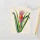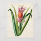 Carte postale avec une image vintage nettoyée et améliorée numériquement d'une plante de broméliacée avec une fleur rose sur un fond de parchemin. Illustré par Etienne Denisse pour Flore d'Amerique, publié à Paris, 1843.