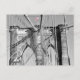 Brooklyn Bridge en noir et blanc avec drapeau américain en couleur.