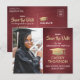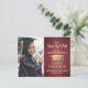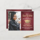 Partagez la joyeuse nouvelle d'une fête de remise de diplômes à venir avec photo personnalisée bordeaux et or enregistrer les invitations de la carte postale date. L'image et le libellé de ce modèle sont simples à personnaliser et les couleurs peuvent être changées avec l'outil de design Zazzle. Customisez-le avec le nom du diplômé, l'année de classe et d'autres détails de faire-part de votre choix. Le design en marron rouge présente un arrière - plan métallique faux brossé, un casquette en carton de faux papier, une élégante calligraphie moderne, une typographie vintage classique et une photo préférée, telle qu'une photo de haut niveau ou une image de la cérémonie de début. Veuillez noter que l'or est imprimé en couleur et non en métal. Ces cartes de graduation élégantes sont une façon élégante de partager une fête spéciale avec votre famille et vos amis. Félicitations au diplômé !