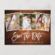 Brosse Moderne Script Bois Rustique Enregistrer La Date Fiançailles Couple 3 Photo Carte Postale