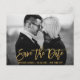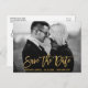 Brosse moderne Script tendance Enregistrer la date Fiançailles Couple Photo Carte postale - Or, noir et blanc