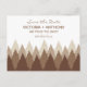 Ces cartes postales datées sont parfaites pour tout couple qui planifie une fête mariage rustique dans les bois. Le design présente une gamme de forêts ombragées dans les tons bruns sur un arrière - plan blanc avec des formulations modifiables coordonnées en couleur. Le design rustique peut être personnalisé en fonction de votre événement spécial et sera le faire-part parfait pour n'importe quelle fête à thème de pays, y compris : douches nuptiales, fiançailles, wedding showers, fêtes d'anniversaire et bien plus encore.