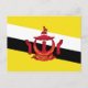 Drapeau de Brunei. Le drapeau national de Brunei a la crête de Brunei au centre, sur un champ jaune. Le champ est coupé par des bandes diagonales noires et blanches, bien qu'elles soient officiellement appelées parallélogrammes. Le champ jaune représente le sultan de Brunei. (En Asie du Sud-Est, le jaune est traditionnellement la couleur du pourcentage). La crête se compose d'un croissant (symbolisant l'islam) associé à un parasol (symbolisant la monarchie), et de deux mains retournées des deux côtés (signifiant la bienveillance du gouvernement). Sous le croissant se trouve un ruban. Sur le croissant et le ruban se trouvent des inscriptions arabes qui se traduisent par "l'Etat de Brunei, au-dessus de la paix" et la devise de Brunei, "Toujours en service avec la direction de Dieu" Les parallélogrammes noirs et blancs représentent les principaux ministres du Brunei.