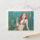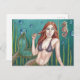 OEuvre originale d'une mignonne sirène soufflante de bulle et d'un curieux hippocampe sur une carte postale bien imprimée