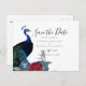 Magnifique paon avec des fleurs sarcelle et bleues, les fleurs de Bourgogne, les feuilles de sauge verte sont mises en vedette sur ces articles de mariage d'automne, d'hiver. Partie d'une collection plus large qui comprend des invitations de mariage à petit budget, des cartes de sauvegarde de dates, des RSVP, des cartes de remerciement photo, des cadeaux pour la mariée et le cortège, et plus encore. Pour un guide détaillé de planification de mariage d'hiver GRATUIT, visitez weddingdesignchic.com.