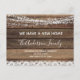 Budget Rustic Farmhouse Wood, String Light and Lace We have Moved New Home or New Address cards - inclut une belle et élégante typographie de script pour la célébration spéciale New Home ou New Address.