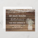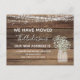 Budget Rustic Farmhouse Wood, String Light and Jar of Baby's Breath Flowers Nous avons Déménagé Nouvelle Maison ou Nouvelle Adresse Cartes - comprend belle et élégante typographie script avec floral moderne pour la célébration spéciale New Home ou New Address.