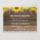 Budget Rustic Farmhouse Wood, String Light and Yellow Sunflower Flowers and Lace Nous avons Déménagé de nouvelles cartes d'adresse - comprend une belle et élégante typographie script avec floral moderne pour la célébration spéciale New Home ou New Address.