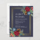 Beau Turquoise bleu turquoise (bleu paon) et bordeaux, Roses couleur vin, feuilles vert sauge, cônes de pin rustique, et un cadre doré sur cet objet de mariage d'hiver qui fait partie d'une collection plus grande qui comprend des invitations à des mariages à budget, à sauver les dates, RSVPs, étiquettes, cadeaux, papeterie, et plus. Pour une planification de mariage d'hiver GRATUITE, consultez le guide weddingdesignchic.com.