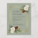 De belles roses blanches, des feuilles d'eucalyptus, des pommes de pin rustiques et un cadre doré caractérisent cet élément de mariage hivernal qui fait partie d'une collection plus vaste qui comprend des invitations de mariage à petit budget, des faire-part, des RSVP, des étiquettes, des cadeaux, de la papeterie, et plus encore. Pour un guide de planification de mariage hivernal GRATUIT, visitez weddingdesignchic.com.