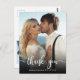 Carte postale Mariage photo moderne Elégant à main Lettré Script Merci. Mariage moderne élégant merci modèle de carte postale avec une photo verticale complète sur le devant avec le texte superposé "Merci" dans une police manuscrite de script de typographie en couleur blanche sur l'image. Personnalisez le nom personnalisé et le message de remerciement. Si vous préférez écrire votre note à la main, supprimez simplement l'exemple de texte pour gagner de l'espace. Si vous avez besoin d'aide ou de l'article correspondant, s'il vous plaît contactez-moi!