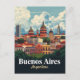 A colorful, vintage-style travel poster illustration showcasing the historic skyline of Buenos Aires, Argentina. The image is dominated by the city's unique architecture, featuring numerous buildings with distinctive red and copper domes, set against a bright, cloudy blue sky. Lush green trees line the foreground, with the city name "Buenos Aires" and "Argentina" displayed on a dark blue banner at the bottom.