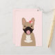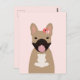 Carte Postale Bulldogs français Fleurs souriantes rose