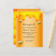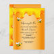 Elégante, amusante, invitation de baby shower d'été. Un faux métal doré, à l'aspect feuille arrière - plan et miel doux gouttes. Décoré de bourdons joyeux et souriants. Avec le texte : Mommy to Bee et le nom de la mère à écrire avec un script de style manuscrit moderne. Lettres noires. Non sexiste.