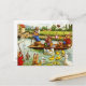 Adorable oeuvre d'art vintage de lapins faisant une promenade en bateau le long d'une rivière. D'autres animaux sont partout