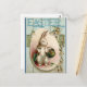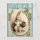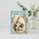 Carte postale Vintage lapin de Pâques avec arrière - plan en bois et fleurs.