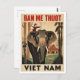Explore the rugged charm of Vietnam's Central Highlands with this captivating vintage travel poster style postcard for Buôn Ma Thuột (Ban Me Thuột). The design is bold and graphic, featuring a massive elephant carrying a figure with a bow and arrow on its back, set against a backdrop of dense jungle, traditional housing, and a grazing deer. This postcard is perfect for celebrating the natural wildlife and ethnic culture of Vietnam, decorating with unique retro Southeast Asian art, or sending a memorable greeting from this mountainous region.