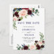 Carte Postale Burgundy Bleu Blush Floral Wedding Enregistrer la