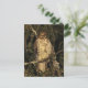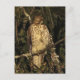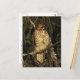 Cette carte postale présente une femelle Buse à queue rousse (Buteo jamaicensis). Un des oiseaux de proie les plus répandus et les plus fréquemment observés en Amérique du Nord, ce chasseur féroce est perché sur une branche haute dans quelques épinettes à feuillage persistant, attendant patiemment l'apparition d'un repas. Sa tête est brune et la poitrine blanche crémeuse a des taches brunes. La queue rouge n'est visible que de l'arrière.