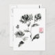 Carte Postale Buzzz, Rose de Sumi-e avec abeille