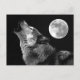 Carte Postale BW Wolf Howling at Moon