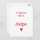 NouvelleCarteVoie - Carte postale amusante qui dit : 'Ça a commencé par un Swipe !' dans une typographie rouge amusante, et un petit cœur rouge mignon.