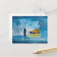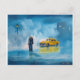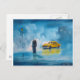 CARTE POSTALE CAB DE TAXI JAUNE COUPLE JOUR DE PLUIE