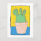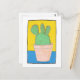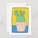 Cette carte d'art a une composition d'art naïf, dessinée à la main avec des stylos et de l'aquarelle, d'un cactus avec trois lobes sur le dessus dans un pot de fleurs. Le fond est jaune et bleu, le pot est beige rosé et le cactus est très vert avec des épines rouges, avec une bordure noire fine et un entourage blanc. C'est original et uniquement disponible sur The Art of Being Beth chez Zazzle.