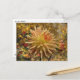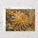 Éclairez la journée de quelqu'un avec cette carte postale qui présente un spectaculaire cactus fleuri dahlia dans les tons saumon, orange, or et jaune pâle. Loin dans l'arrière - plan sont plus de dahlias et un pommier plein de fruits rouges.